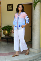 Handcrafted from 100% cotton and block printed by artisans in vibrant orange and blue, the Zante Blouse is light as air with a gossamer touch. The relaxed silhouette makes it a timeless piece for both everyday wear and special moments.