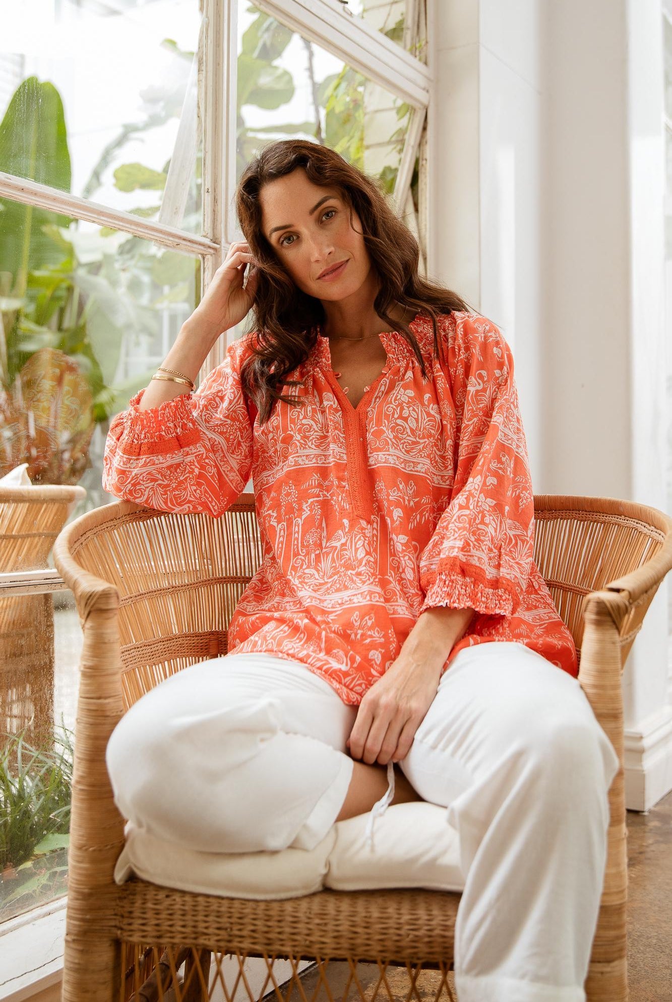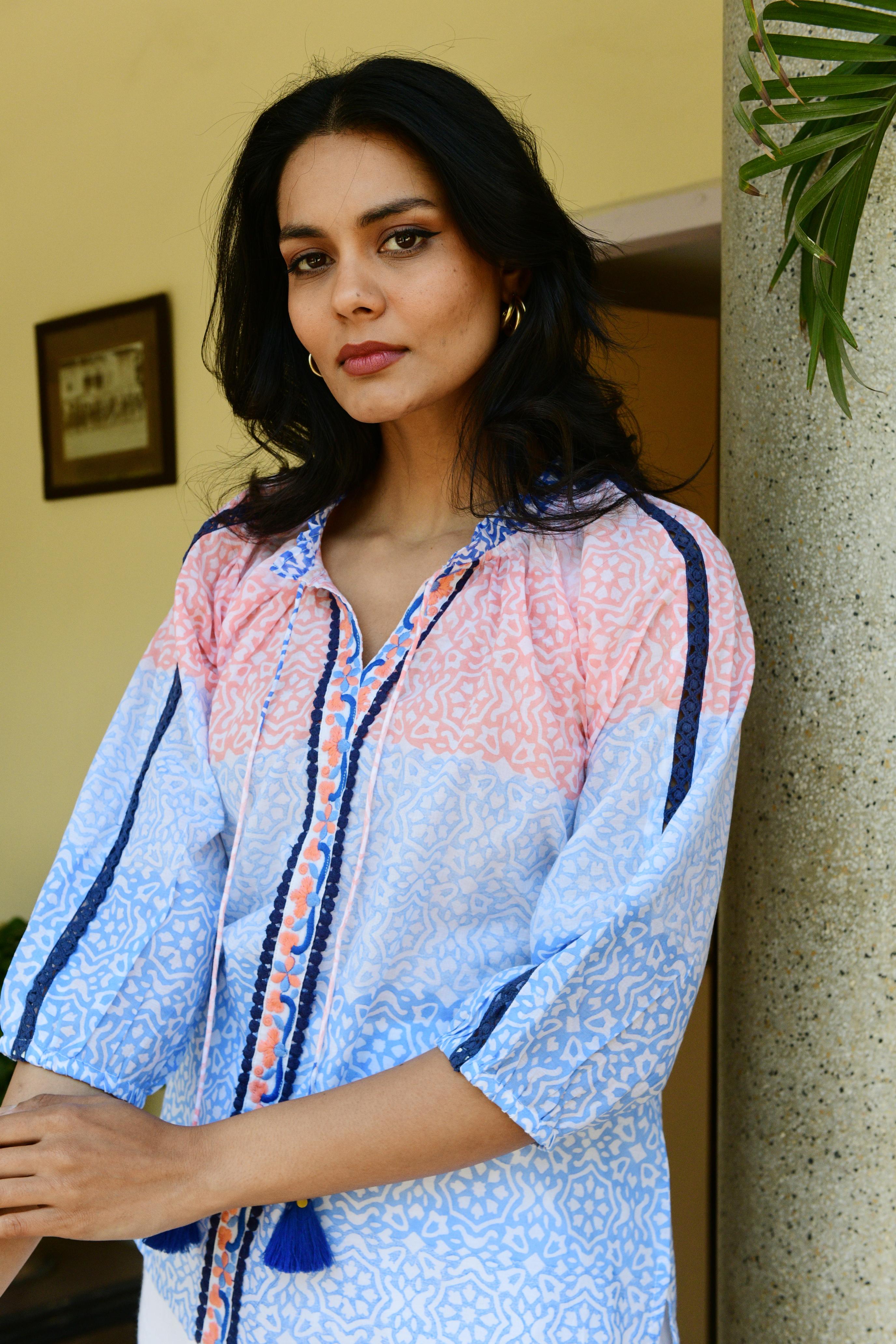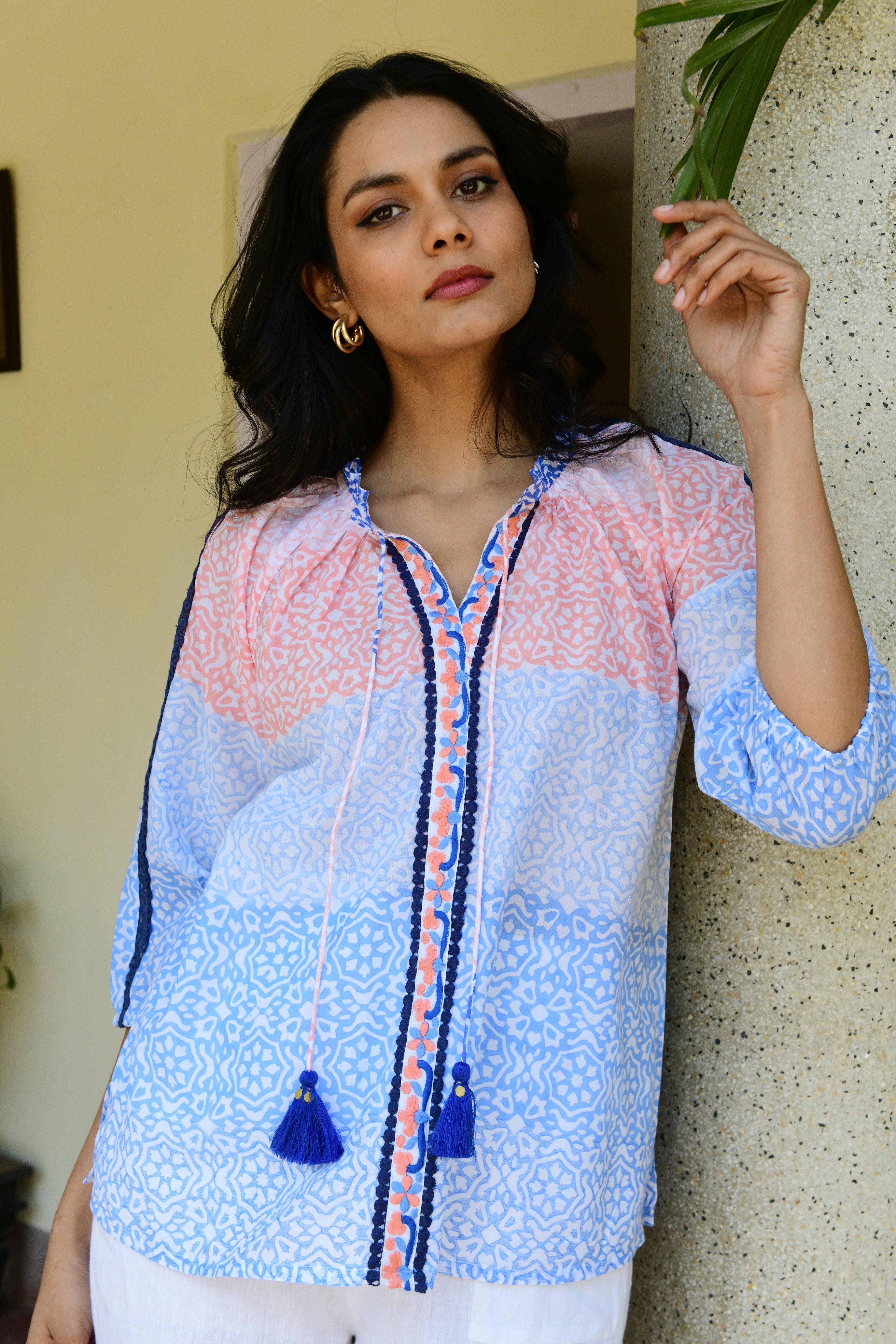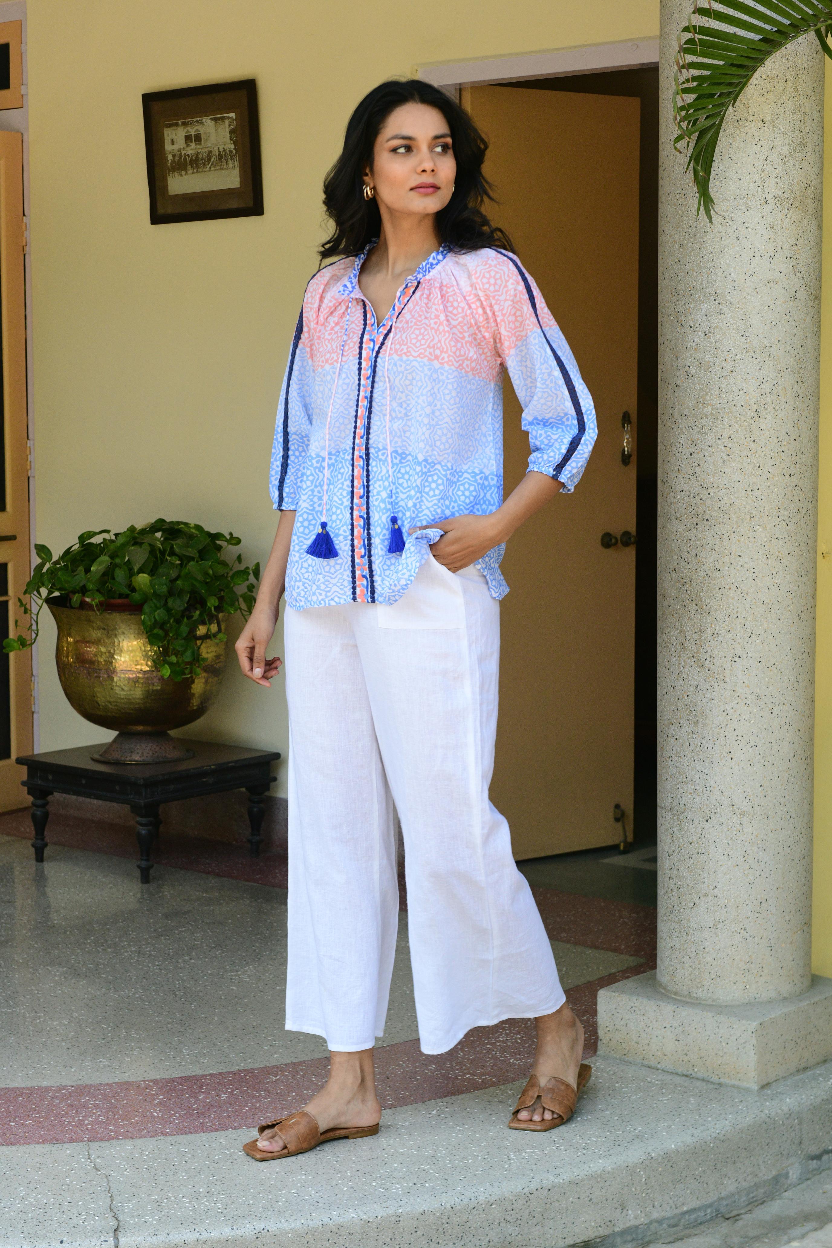 Our tops are made for layering and lightness with lightweight fabrics, artisan prints, and embroidered detailing that elevate every simple look. From flowy blouses to structured shirts, these pieces pair beautifully with linens or your favourite denim. They give you polish when you need it, and relaxed elegance when you seek comfort.