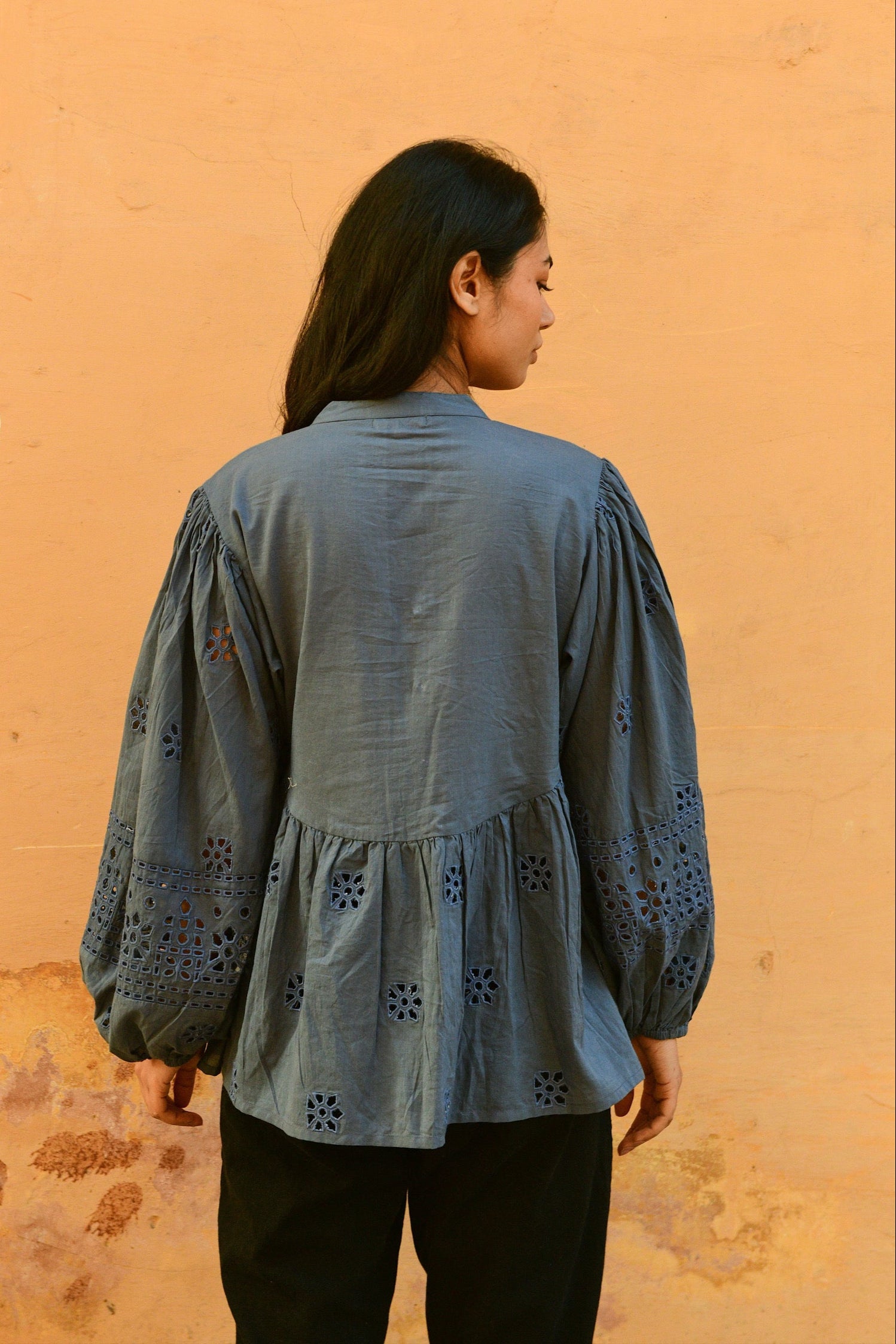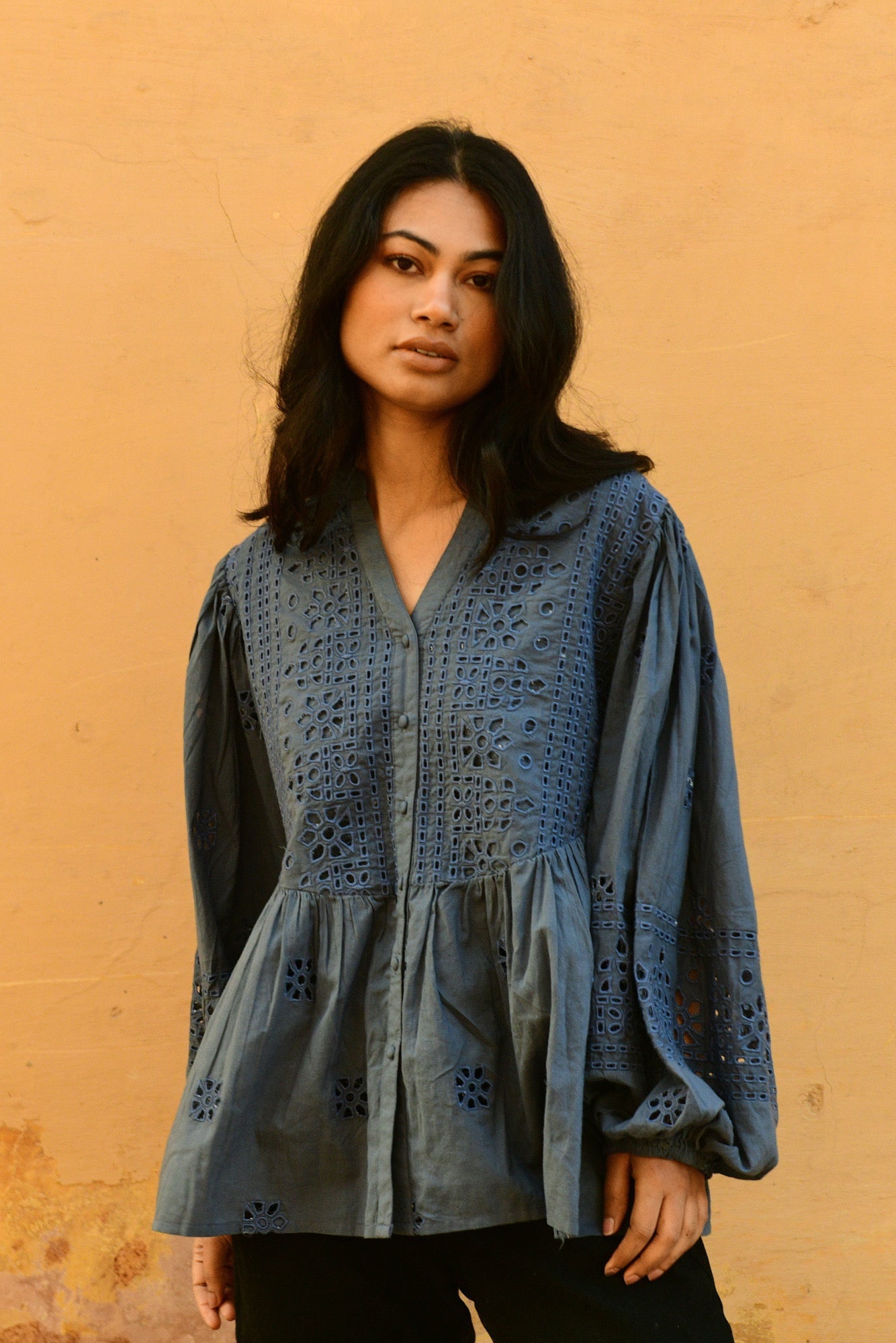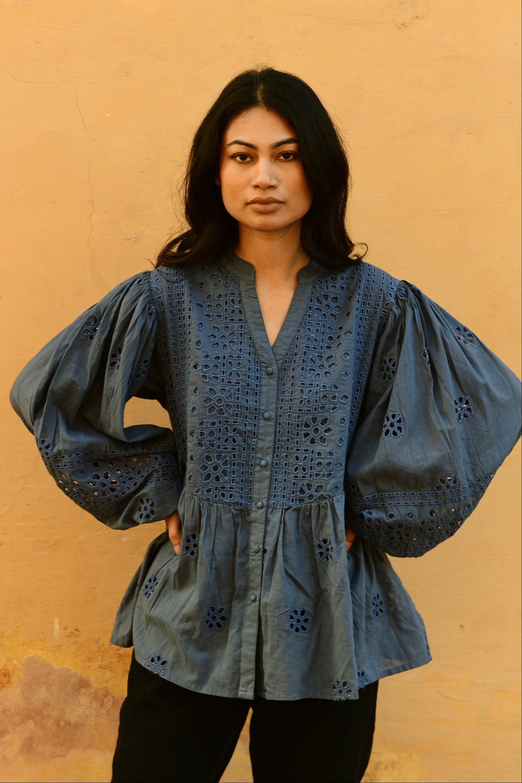 The Aster shirt brings modern femininity to a timeless classic — crafted from soft, textured cotton with intricate cutwork lace for a refined yet effortless feel.
