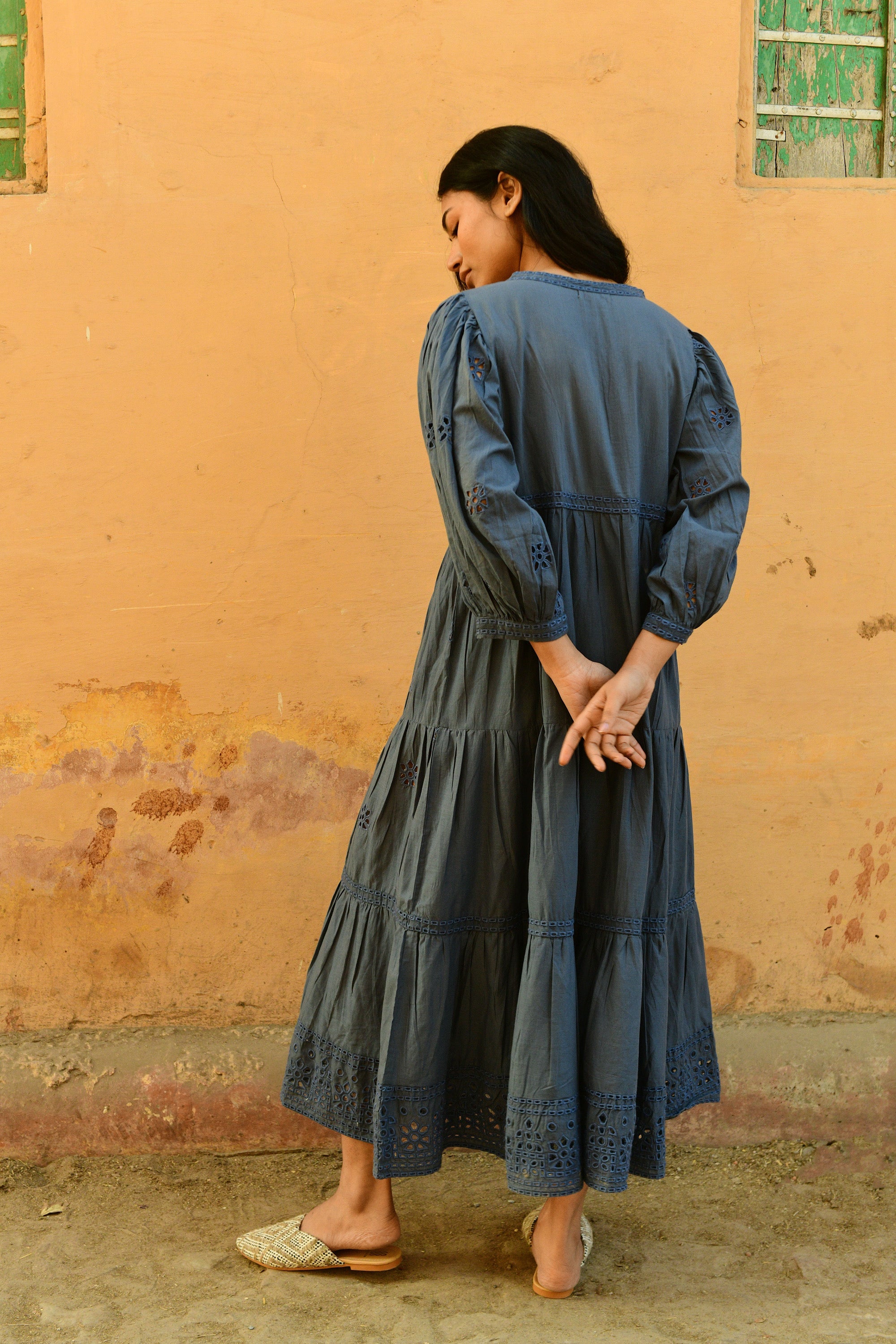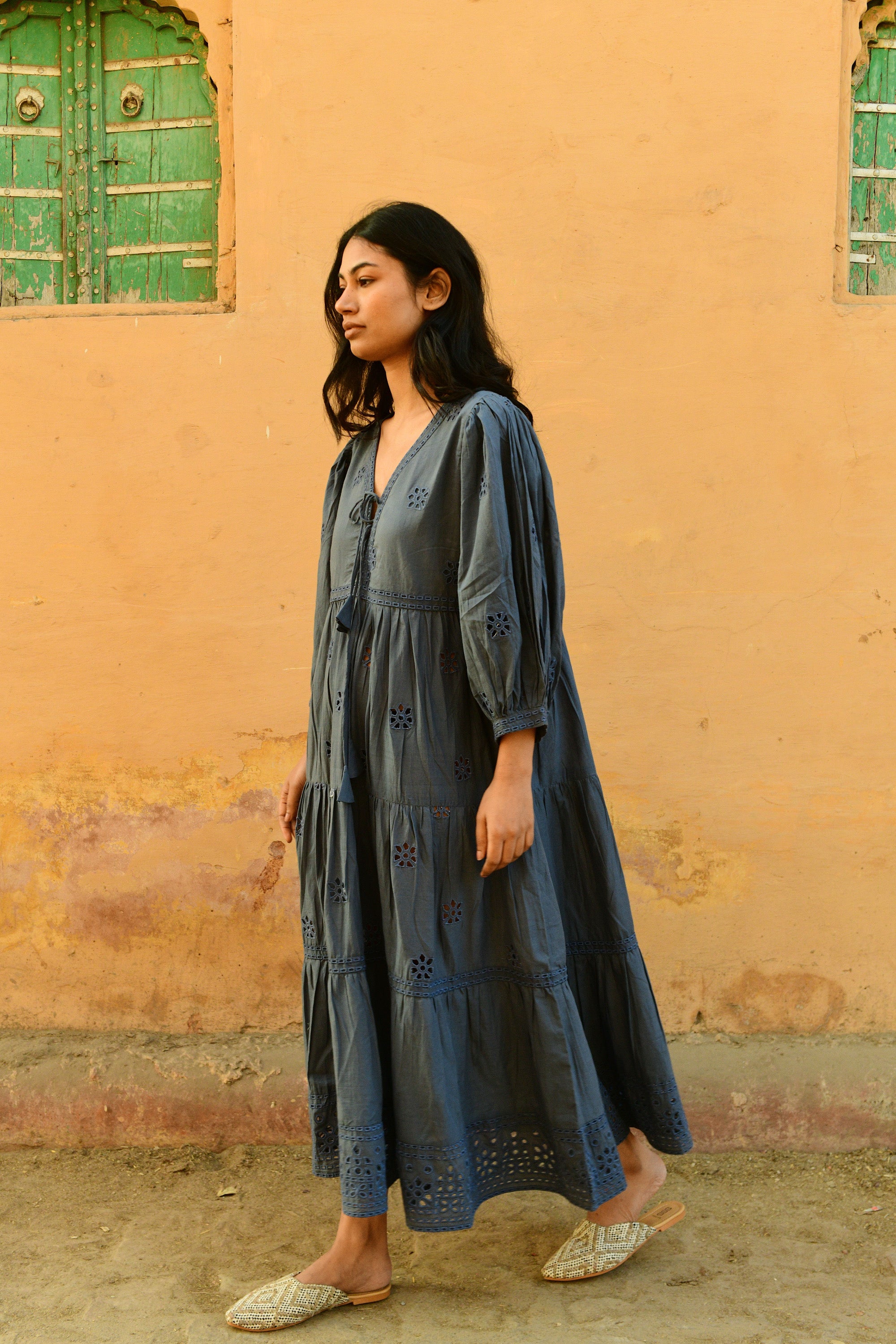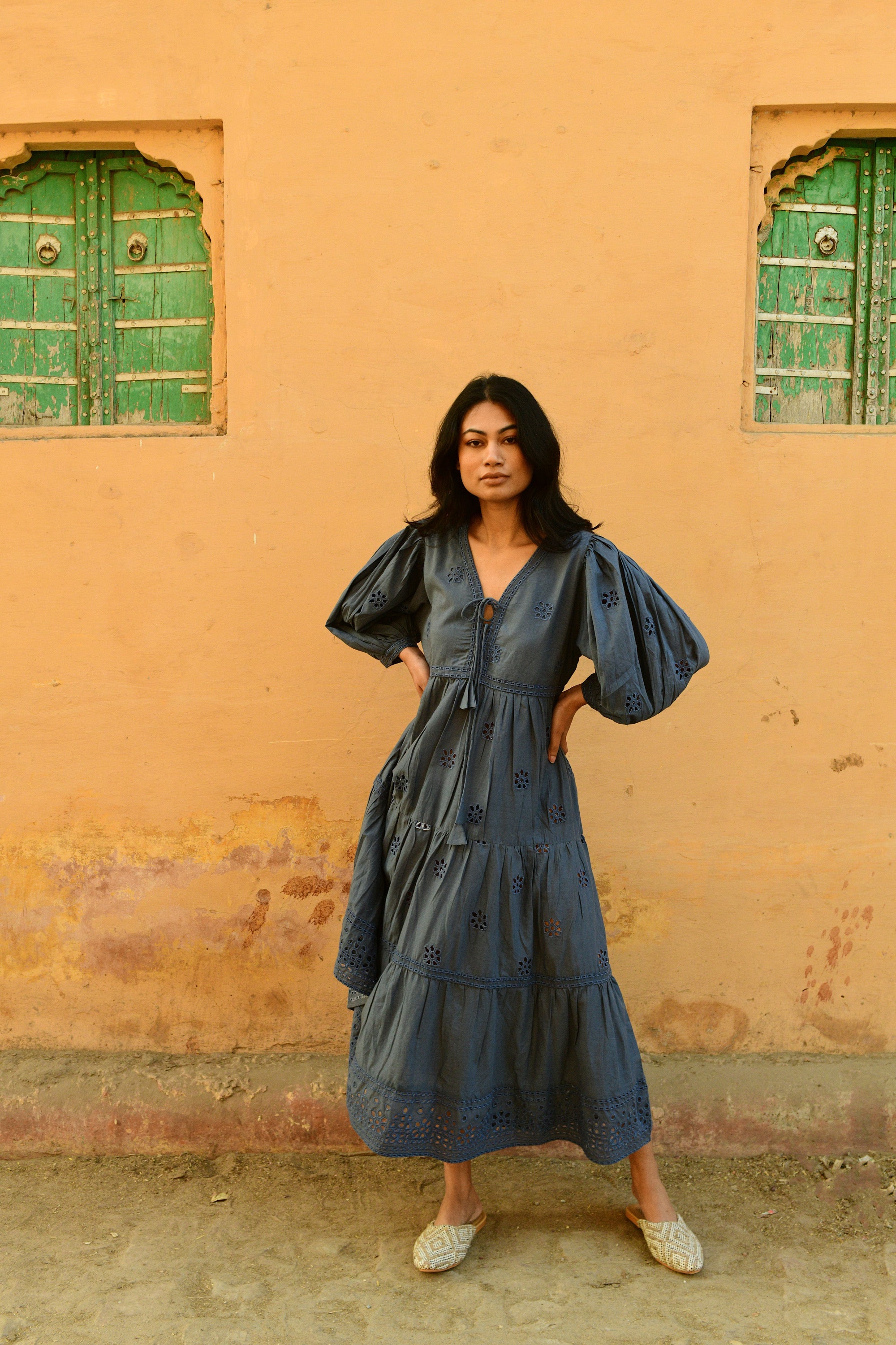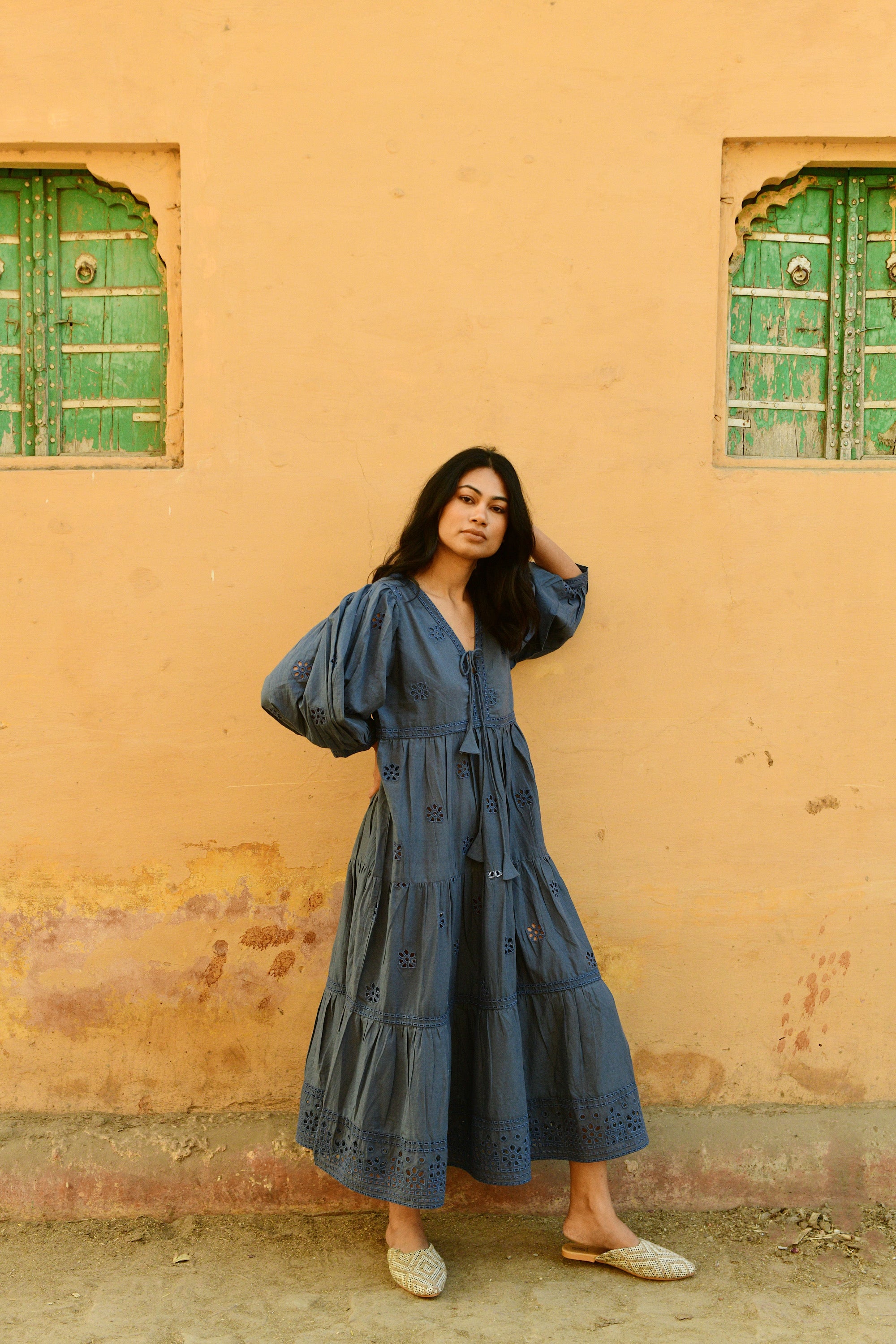 The Aster Maxi is a statement in refined bohemian style, crafted from soft, gossamer cotton in a washed denim blue. Featuring hand cut-out embroidery throughout, it’s a standout piece that combines texture, craftsmanship, and effortless elegance.