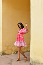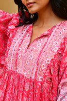 The Camilla Shift Dress is a statement where soft volume meets timeless, bohemian inspired style. Crafted in an exclusive hand block print in vibrant cherry red, it features soft billow balloon sleeves and a flattering knee-length silhouette that moves with ease.