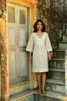 In a soft oat hue with cream embroidery, it offers understated elegance that pairs effortlessly with sandals by day or boots for cooler evenings. Comfortable yet elevated, the Folk Dress is crafted for versatile, everyday wear with a refined, fashion-forward finish.